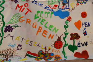 In Ungarn hatte ich aufgrund des engen Zeitplans, der durch eine später als ursprünglich geplante Abreise entstanden war, nur sehr wenig Zeit für die Malaktion zur Verfügung. Und es wurde eine spannende Zeit für mich, meine Begleiterin Karin und unseren gemeinsamen Freund „Moped“, der mit seinem eigenen Auto hinter uns herfuhr. Aber das Glück war wieder mal auf meiner Seite, und in Mateszalka konnte ich mehrere Kinder und Jugendliche spontan zum Mitmachen motivieren.