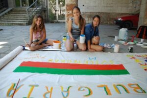 In Bulgarien wurde es auch wieder spannend, da wir uns schon langsam der türkischen Grenze näherten. Aber in Swilengrad sprach ich dann erfolgreich 3 hübsche Mädchen an, die auf einem öffentlichen Platz sehr kreativ ihre Stadt und ihr Land vorstellten. Ein Reporter des lokalen Fernsehens kam zufällig vorbei, filmte die Malaktion und machte mit mir ein Interview. Bei den Mädels bedankte ich mich dann schön artig mit 3 modischen Sonnenbrillen.
