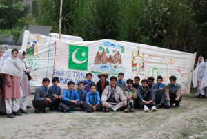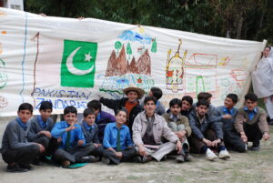 In Pakistan hingegen hatte ich jede Menge Zeit und auch entsprechendes Glück, da die Sommerferien schon vorbei waren. Im wunderschönen Yasin Valley im gebirgigen Nordpakistan beteiligten sich sowohl Mädchen (teilweise verschleiert) als auch Jungs der privaten Lalak Jan School in Hundur an der Malaktion, hatten jede Menge Spaß dabei und posierten danach vor dem liebevoll bemalten Banner. Und abends gab es dann für mich und meinen Freund Carlos eine spontane und sehr lustige Musik- und Tanzdarbietung, die einer der Lehrer mit seinen Freunden organisiert hat. Zum Abschied schenkte ich der Schule dann meinen alten Laptop.