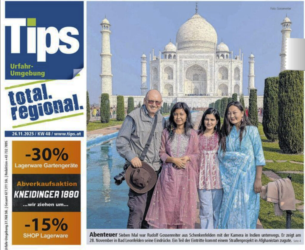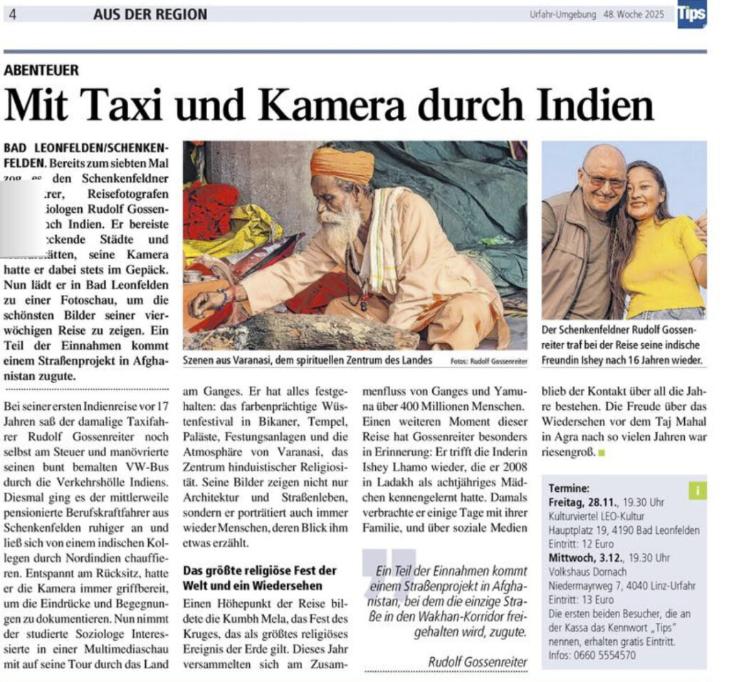 TIPS Urfahr-Umgebung 2025-11-26: Mit Taxi und Kamera durch Indien (Titelseite und Seite 4)